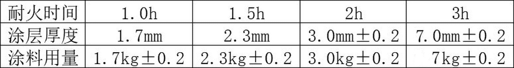 五、耐火時(shí)間和涂層厚度及涂料用量參考下表∶